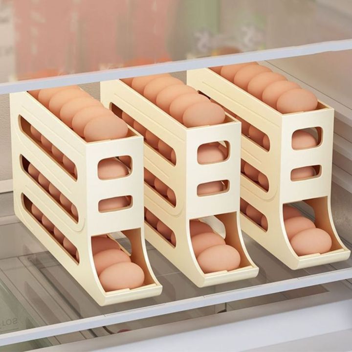 4-Tier Egg Holder for Fridge – Auto-Rolling Space-Saving Egg Dispenser (Holds 30 Eggs) 🥚✨