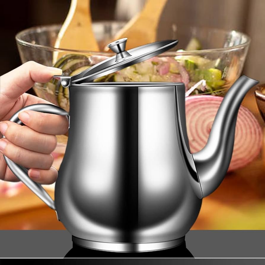 রান্নাঘরের তেল সংরক্ষণ ও ব্যবহারের জন্য একটি স্টাইলিশ ও টেকসই স্টেইনলেস স্টিল অয়েল স্ট্রেইনার পট। ফিল্টারসহ এই কন্টেইনার তেল পরিষ্কারভাবে সংরক্ষণ ও নিয়ন্ত্রিতভাবে ঢালতে সাহায্য করে।