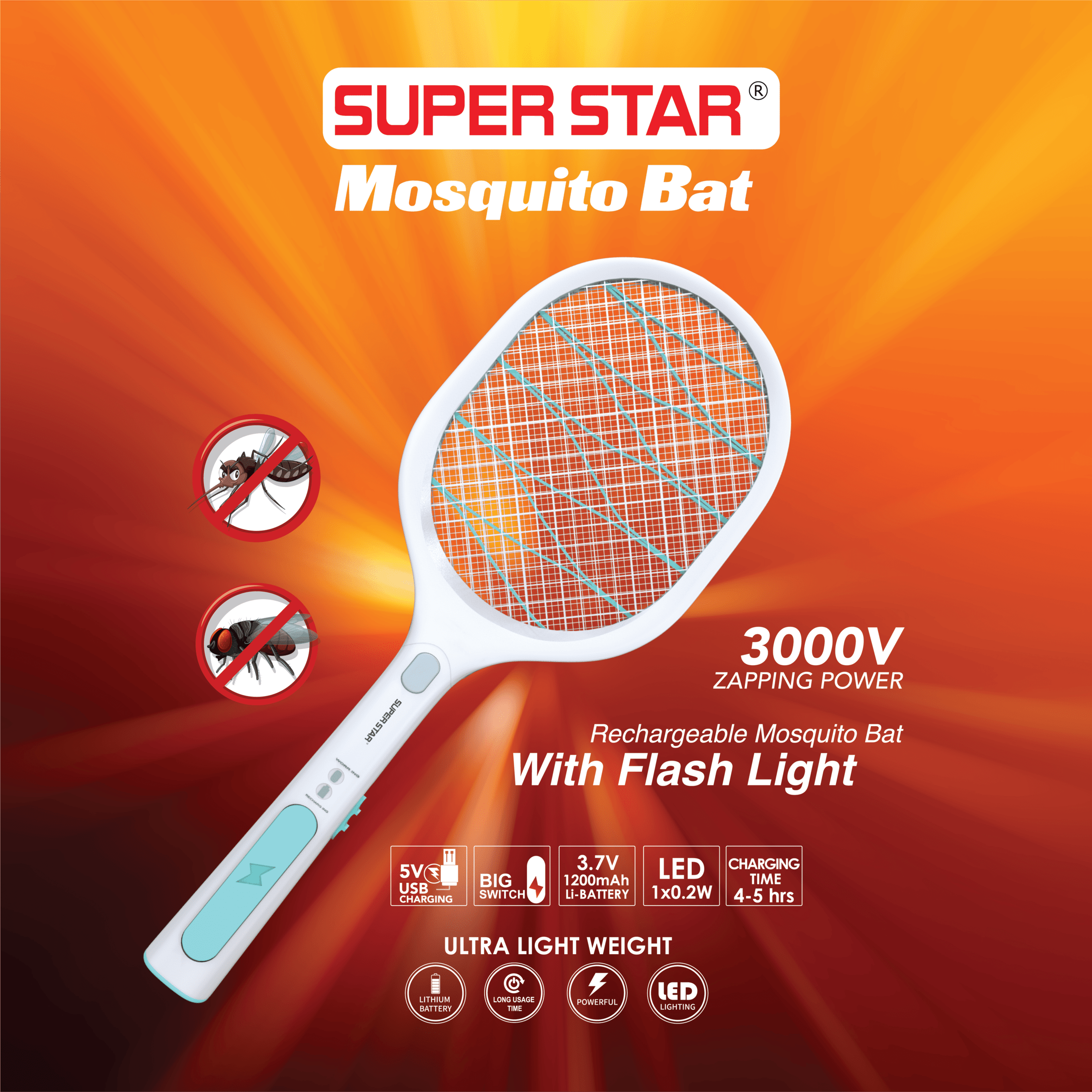 মশার ঝামেলা থেকে মুক্তি পেতে ব্যবহার করুন Super Star Mosquito Bat। শক্তিশালী ইলেকট্রিক জ্যাপিং পাওয়ার, LED ফ্ল্যাশলাইট এবং রিচার্জেবল ব্যাটারির কারণে এটি ঘর বা বাইরে ব্যবহারের জন্য দারুণ কার্যকর।